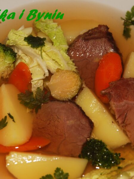 Rosół z baraniny z warzywami i mięsem