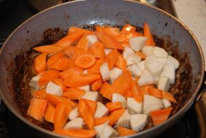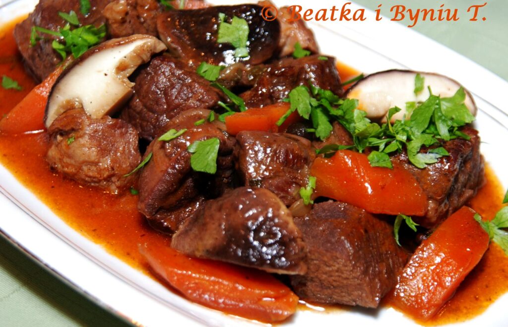 Dzisiaj gulasz z jelenia. Udało się zdobyć piękne mięsko z jelenia. Miał co prawda być robiony w kociołku na ognisku, na polu ale niestety powrót zimy pokrzyżował plany. Przeprowadziliśmy kuchnię ogniskową do domu i też dało radę, chociaż efekt ogniska jest niepowtarzalny.