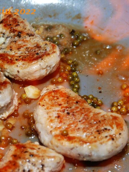 Polędwiczki wieprzowe w sosie z zielonym pieprzem