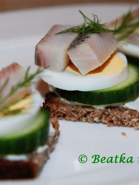 Przekąska ze śledzia z jajkiem i ogórkiem