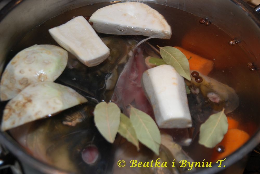 Na Podkarpaciu barszcz czerwony należy do ścisłej tradycji. Dlatego też pora już na prawdziwie wigilijny barszcz na głowach karpia. Nie chodzi o to aby to była czerwona zupa rybna ale żeby ten postny barszcz miał świąteczny wymiar i smakował dokładnie tak jak wygląda. Opiszę jak ja to robię, być może znajdą się chętni którzy albo pamiętają albo tak samo robią.